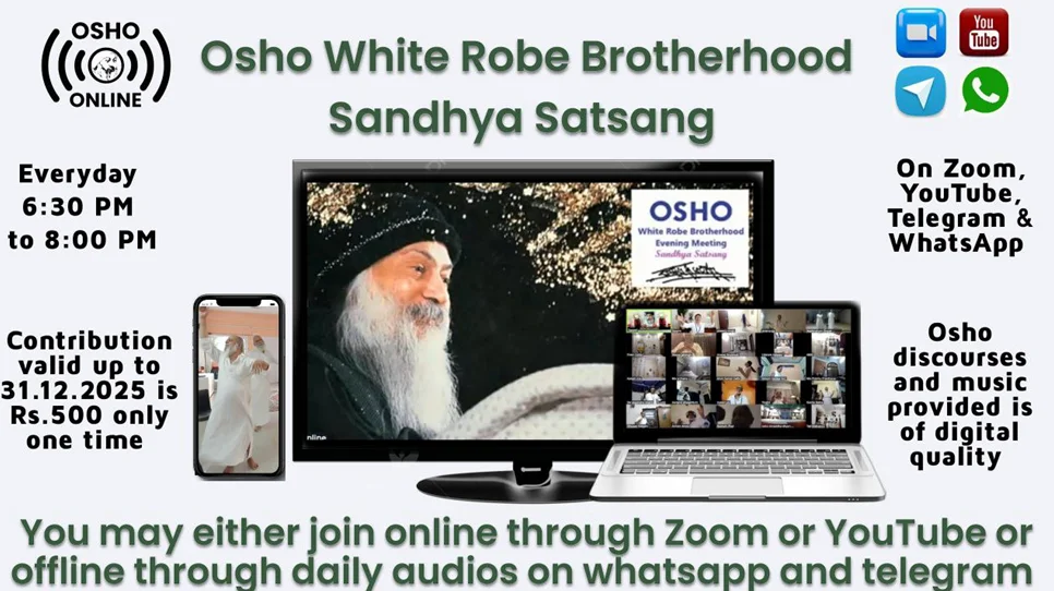 You can now participate in the OSHO sandhya satsang that is streamed daily on Zoom and YouTube.