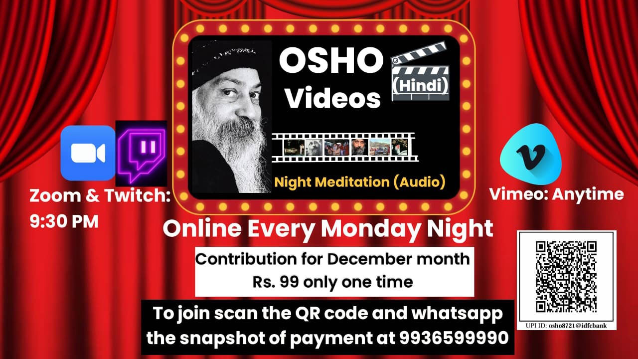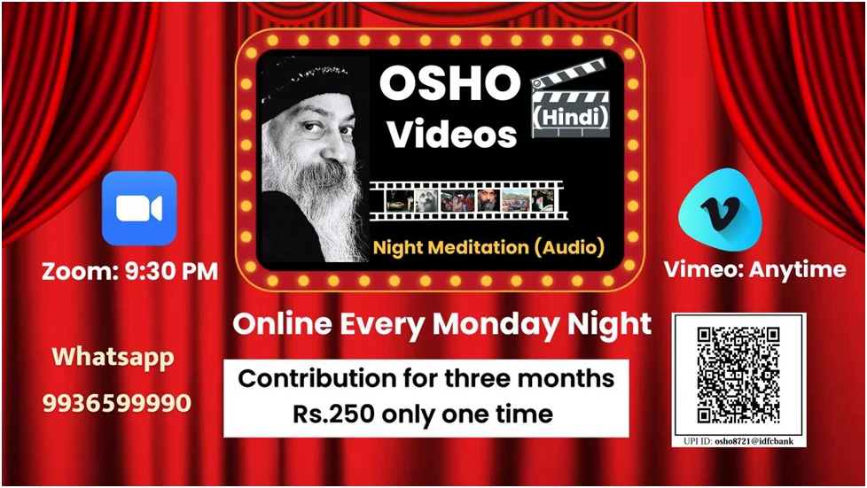 Osho video discourses in Hindi are a treat for eyes. The available videos of older times have been digitally refined. We watch the videos every Monday night on Zoom at 9:30 IST. We also provide an audio for Osho guided night meditation.